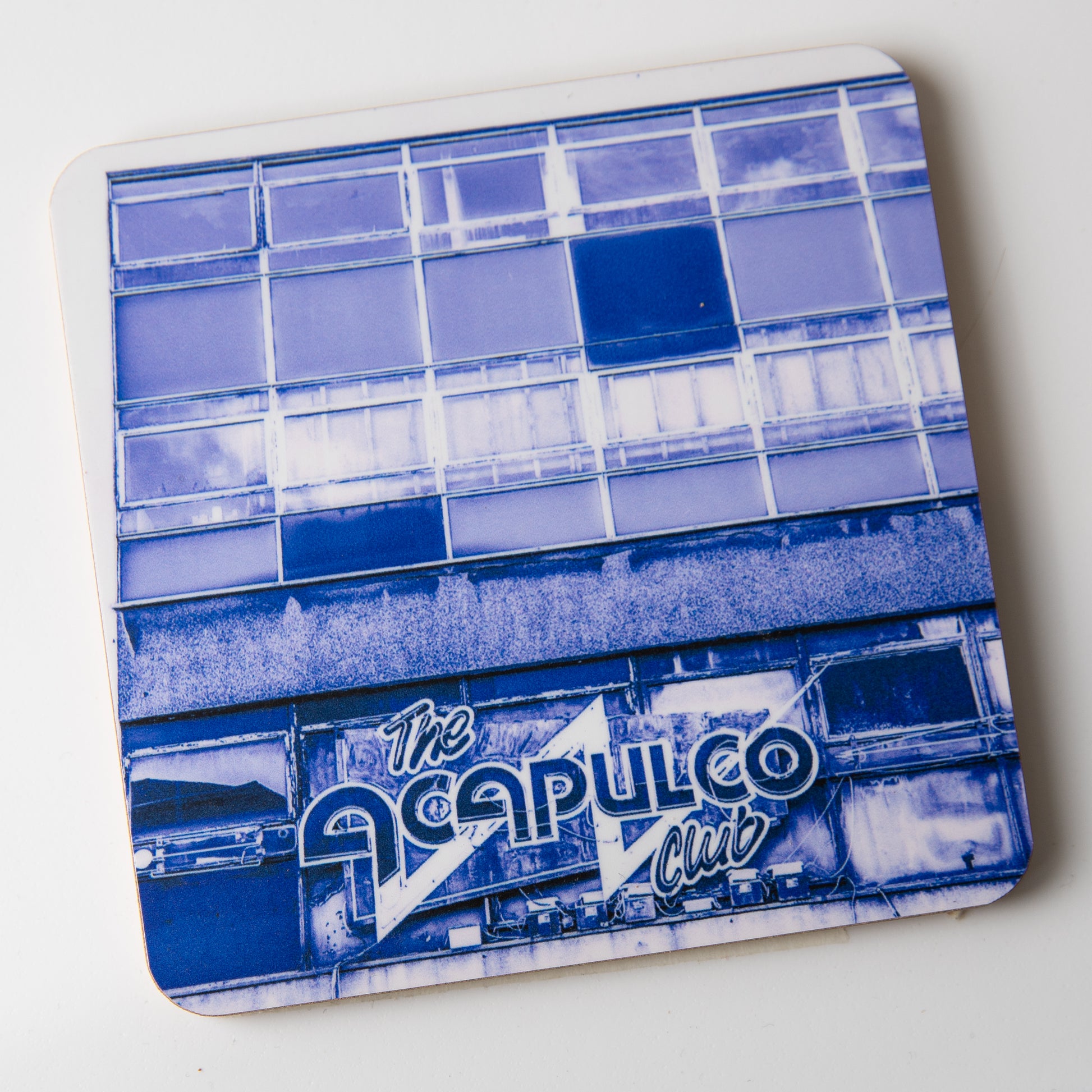 Halifax boasts Yorkshires oldest nightclub, the Acapulco, you can now own this Legendary Yorkshire nightclub on a set of coasters, this one the Blue and Red one.