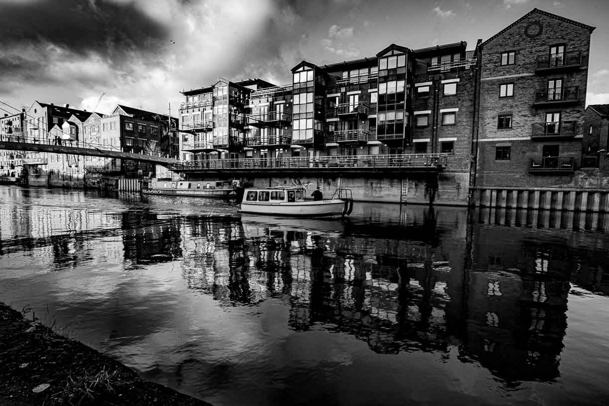 Brewery Wharf Mono boat reflection