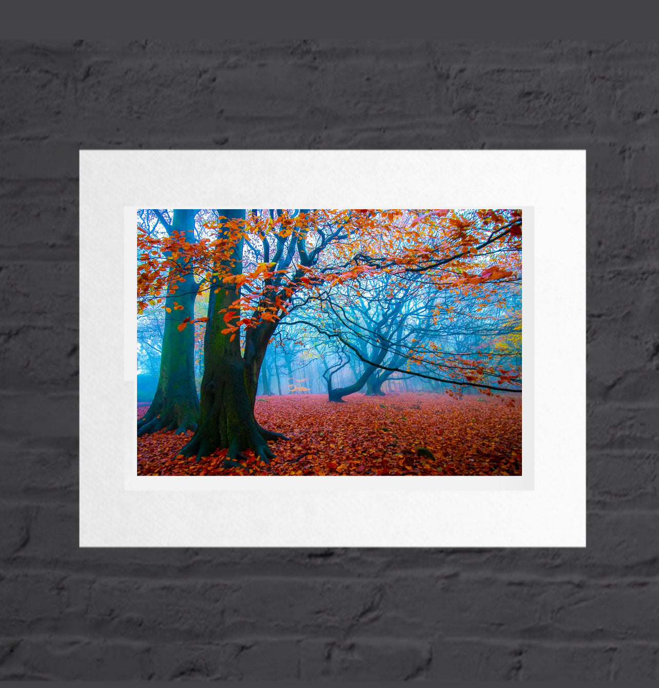 Golden Acre park Autumn mist, near Leeds, has some beautiful woodland, this shot taken in the Autumn. The Blue and Orange looks great on the textured paper.