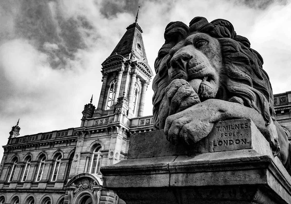 I have been taking photos around Saltaire in Yorkshire for around 20 years and this lion, along with the other 3 on Victoria Road are one of the main focal points of Sir Titus's vision for the village.