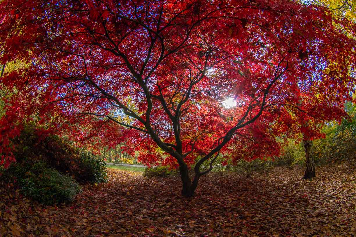 I took this shot in a Golden Acre park, which I have been going to years, I visited on this occassion in Autumn and loved the vibrant red colour of the leaves on the tree, against the contrast of the beautiful Autumn colours of the leaves on the floor and the green trees in the background