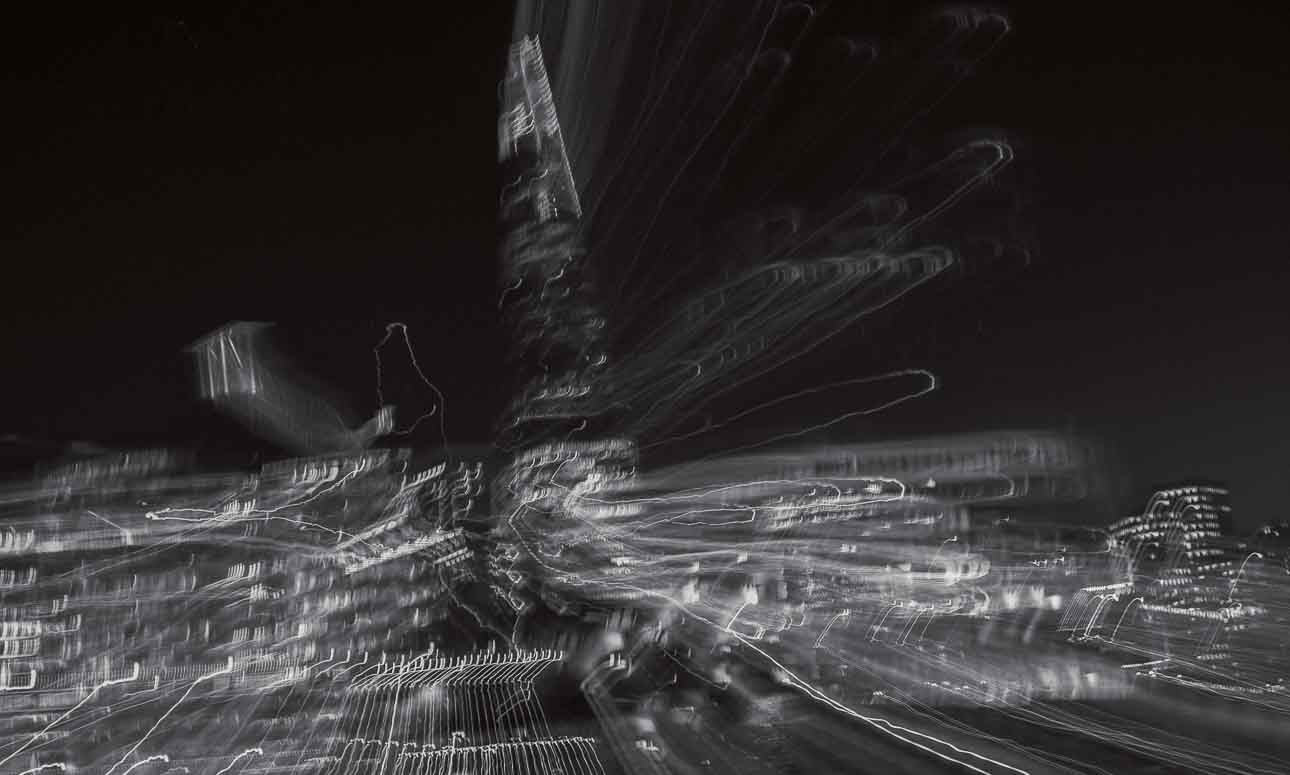 This is taken using a slow shutter speed technique to drag the light out of the subject, I took it just after been to the top and like the simple contrast of the Black and White, next to the madness of the light bursts!